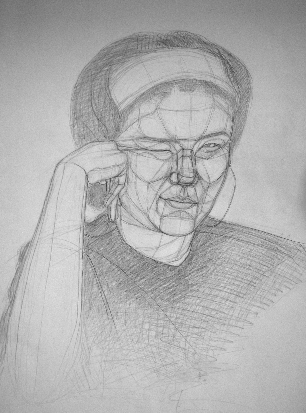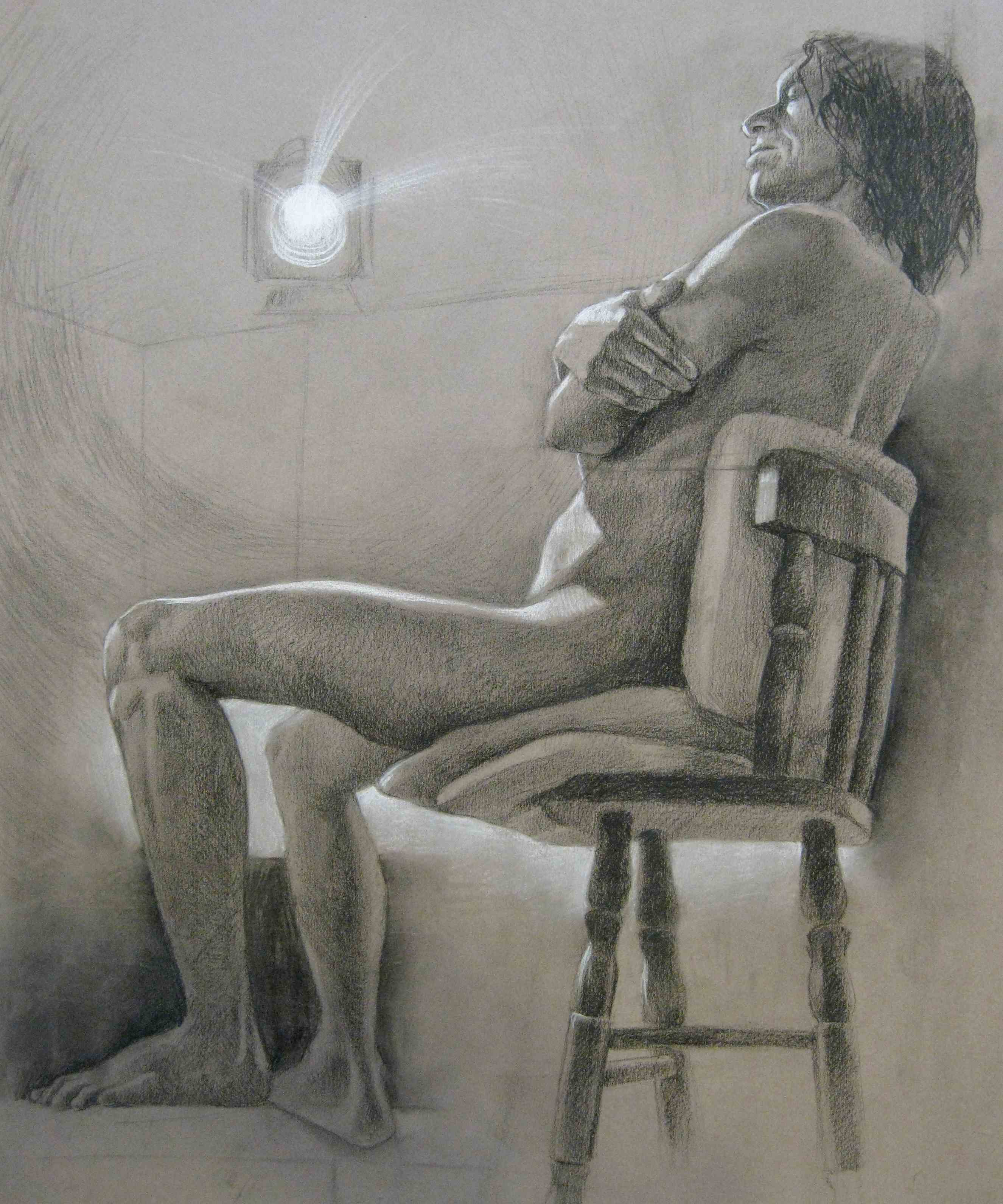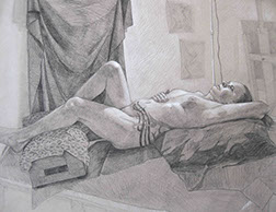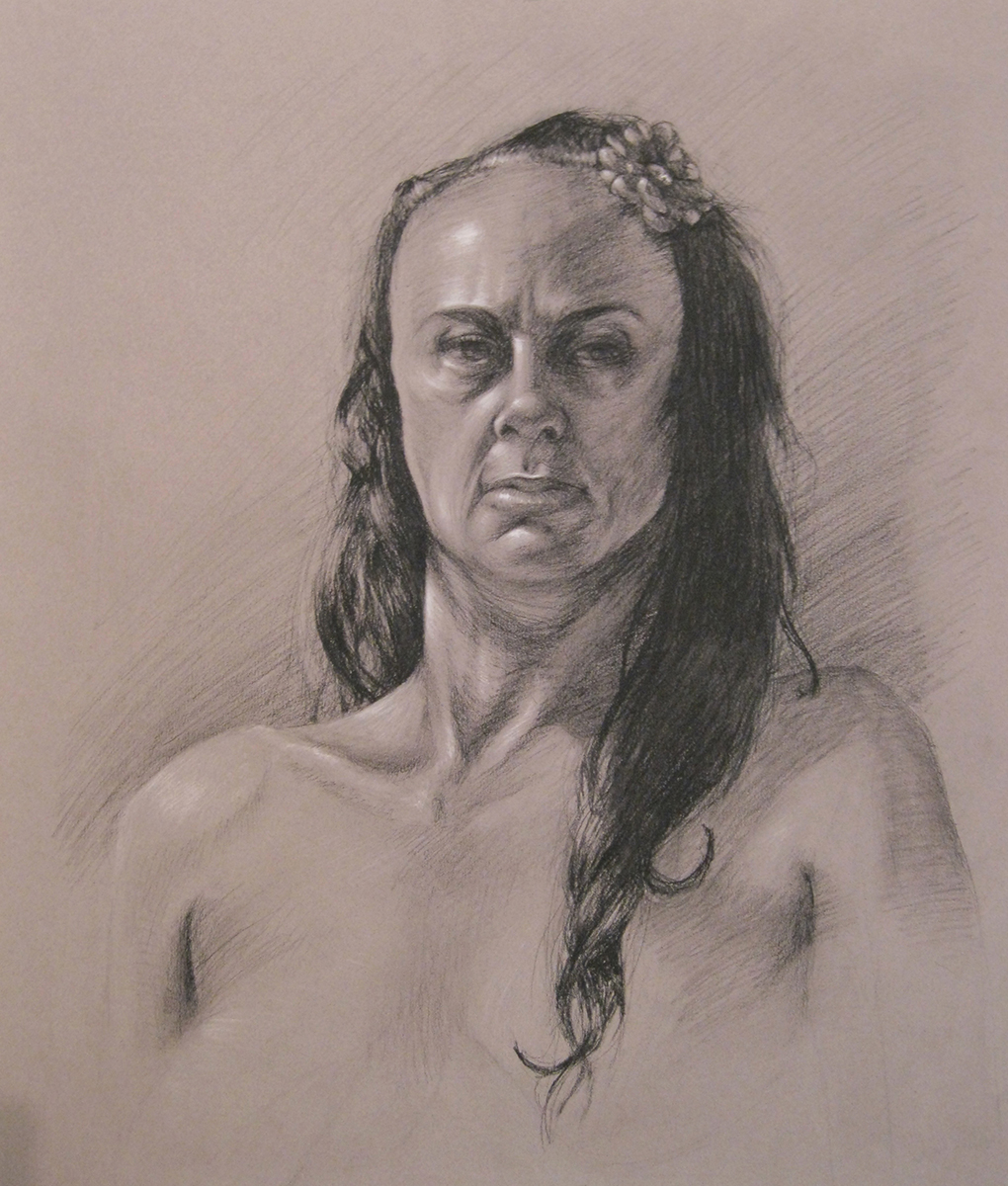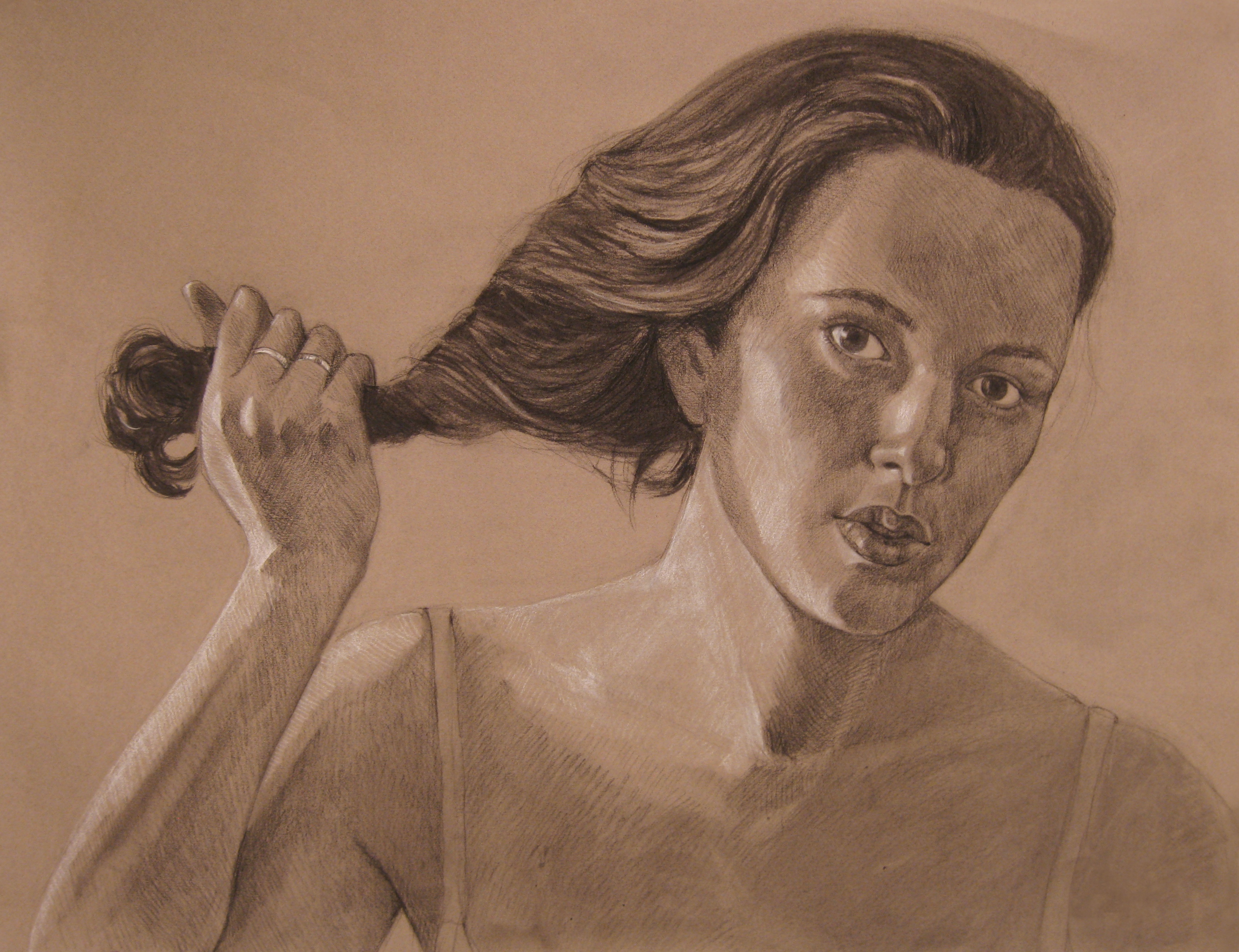 17. Self-Portrait Final from Observation, Charcoal and Watercolor