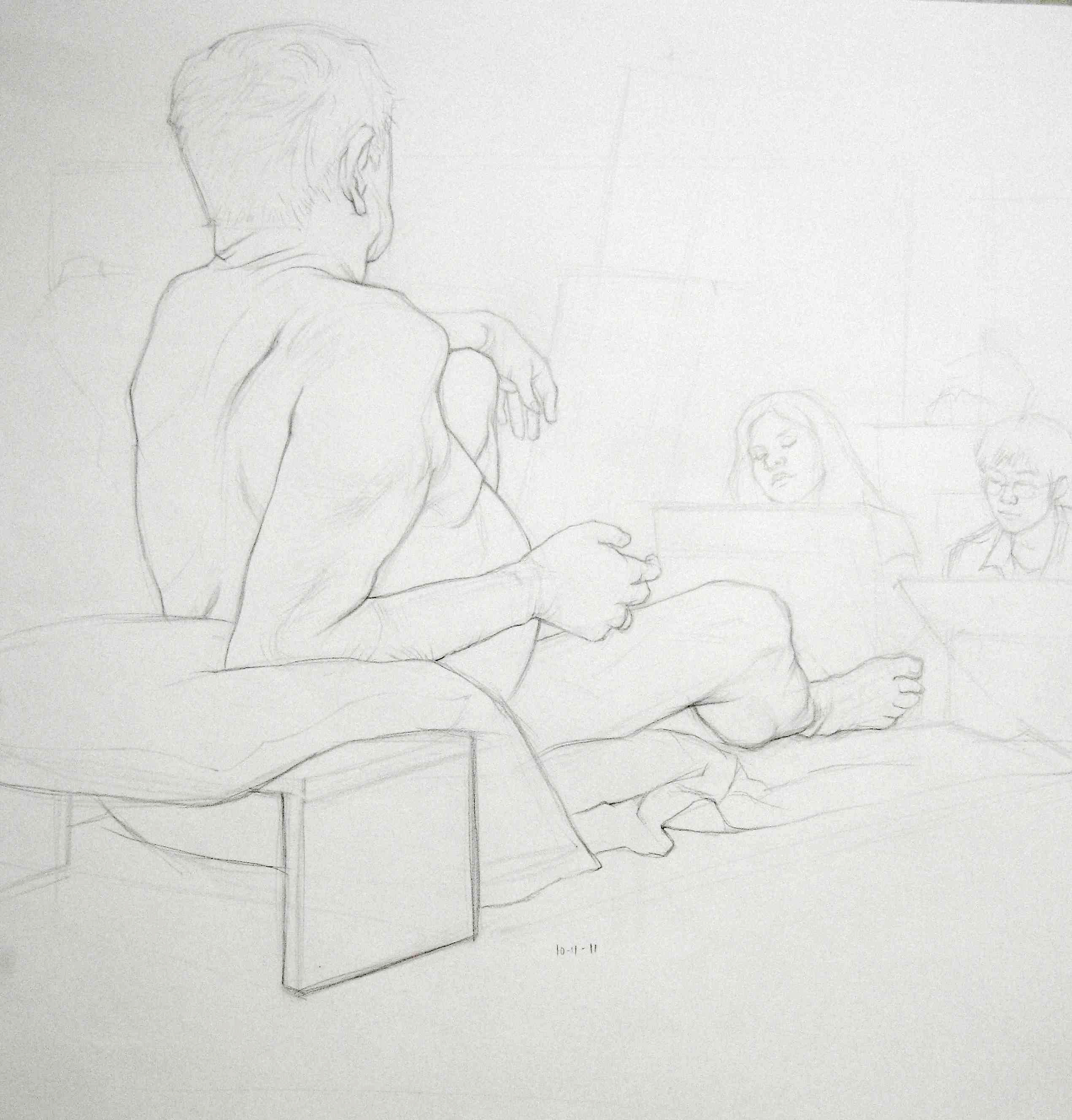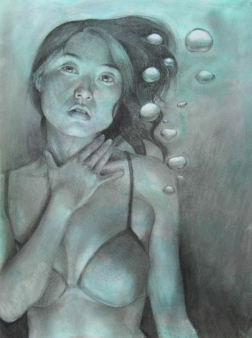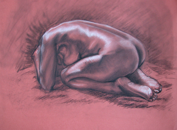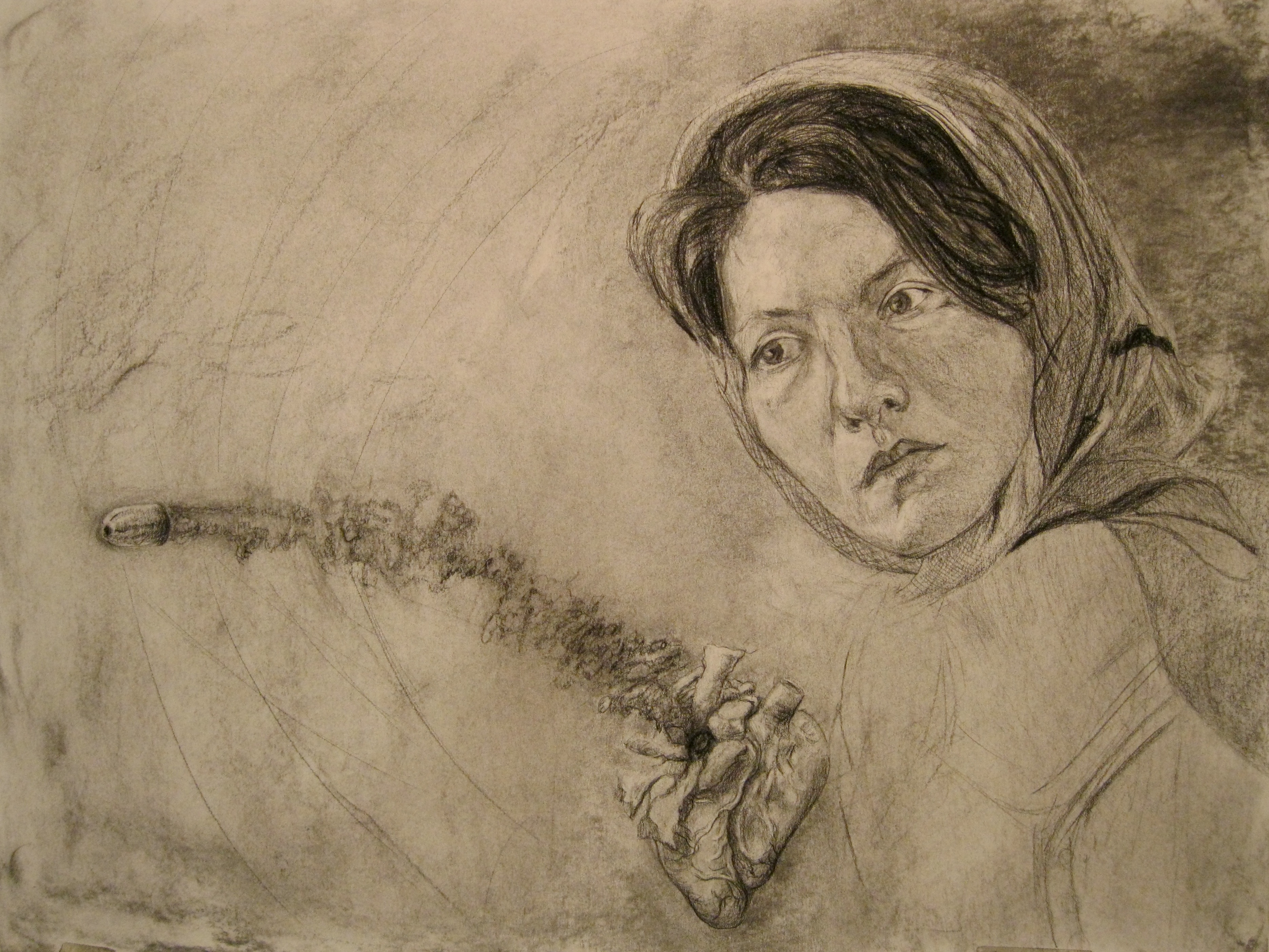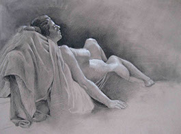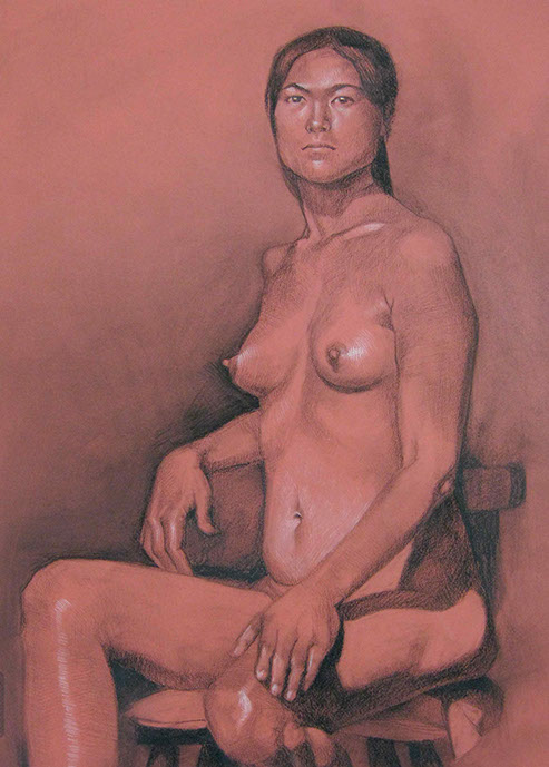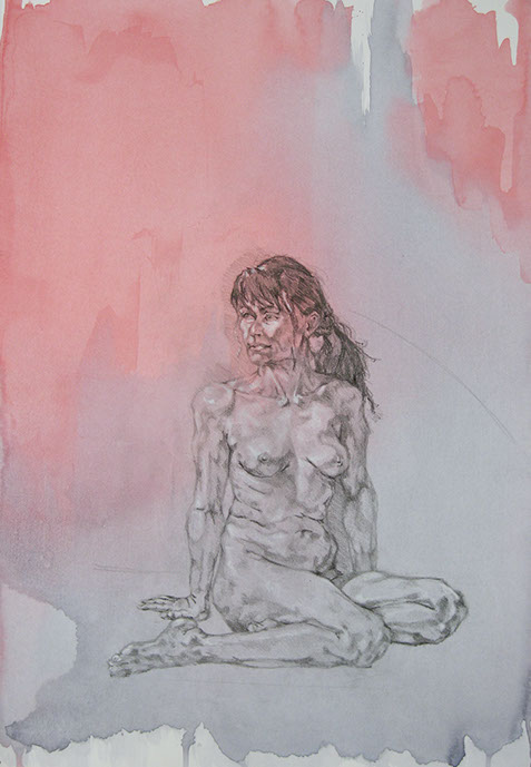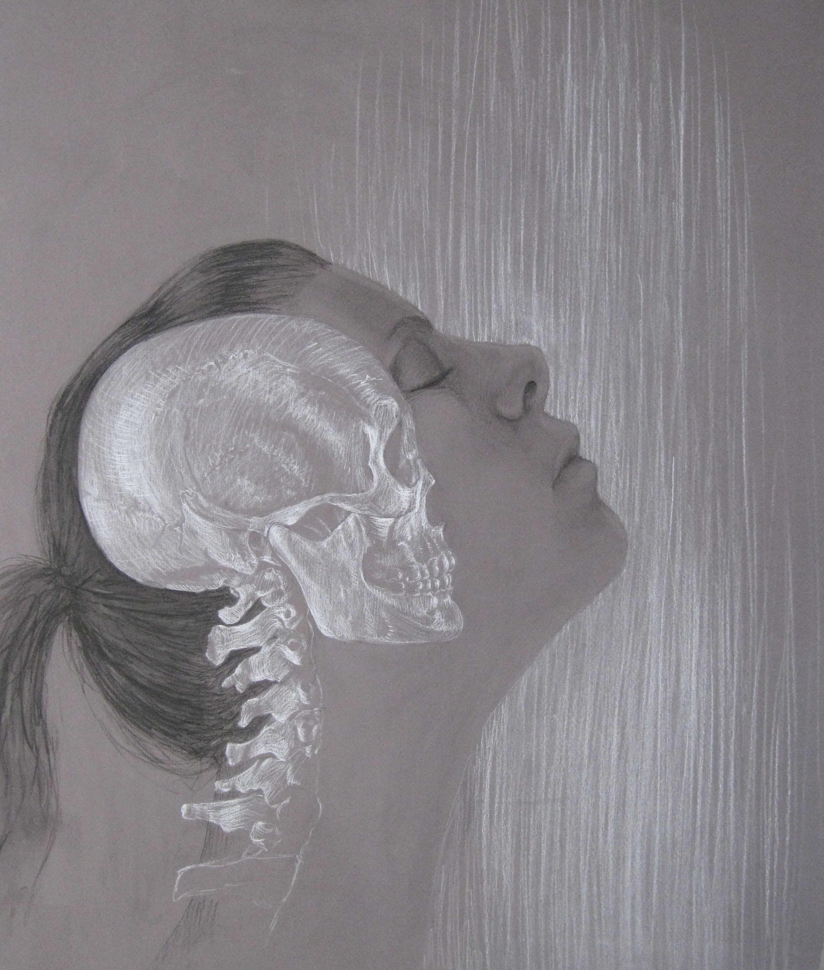 17. Self-Portrait Final from Observation, Charcoal and Watercolor