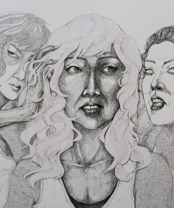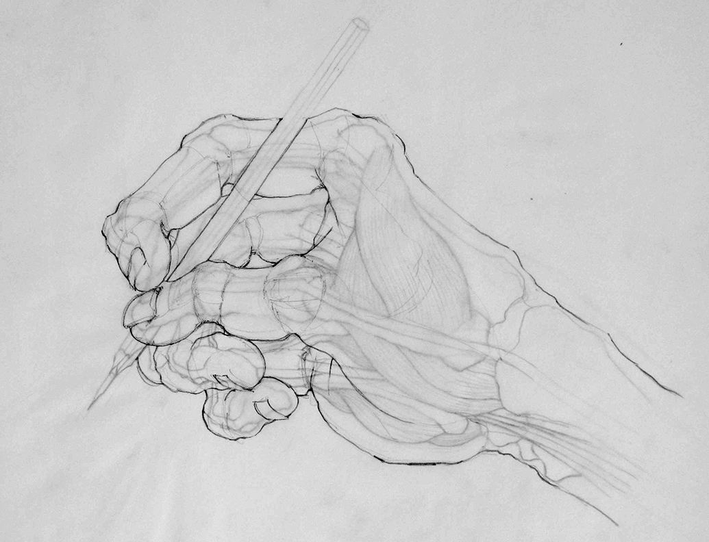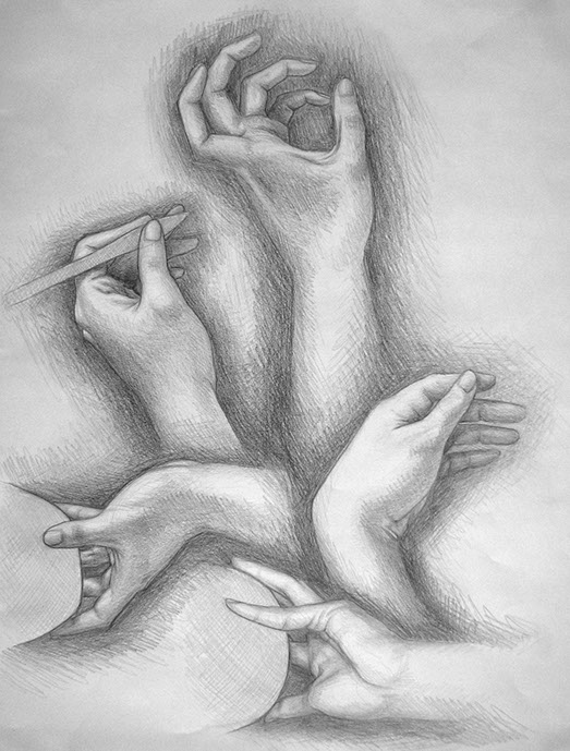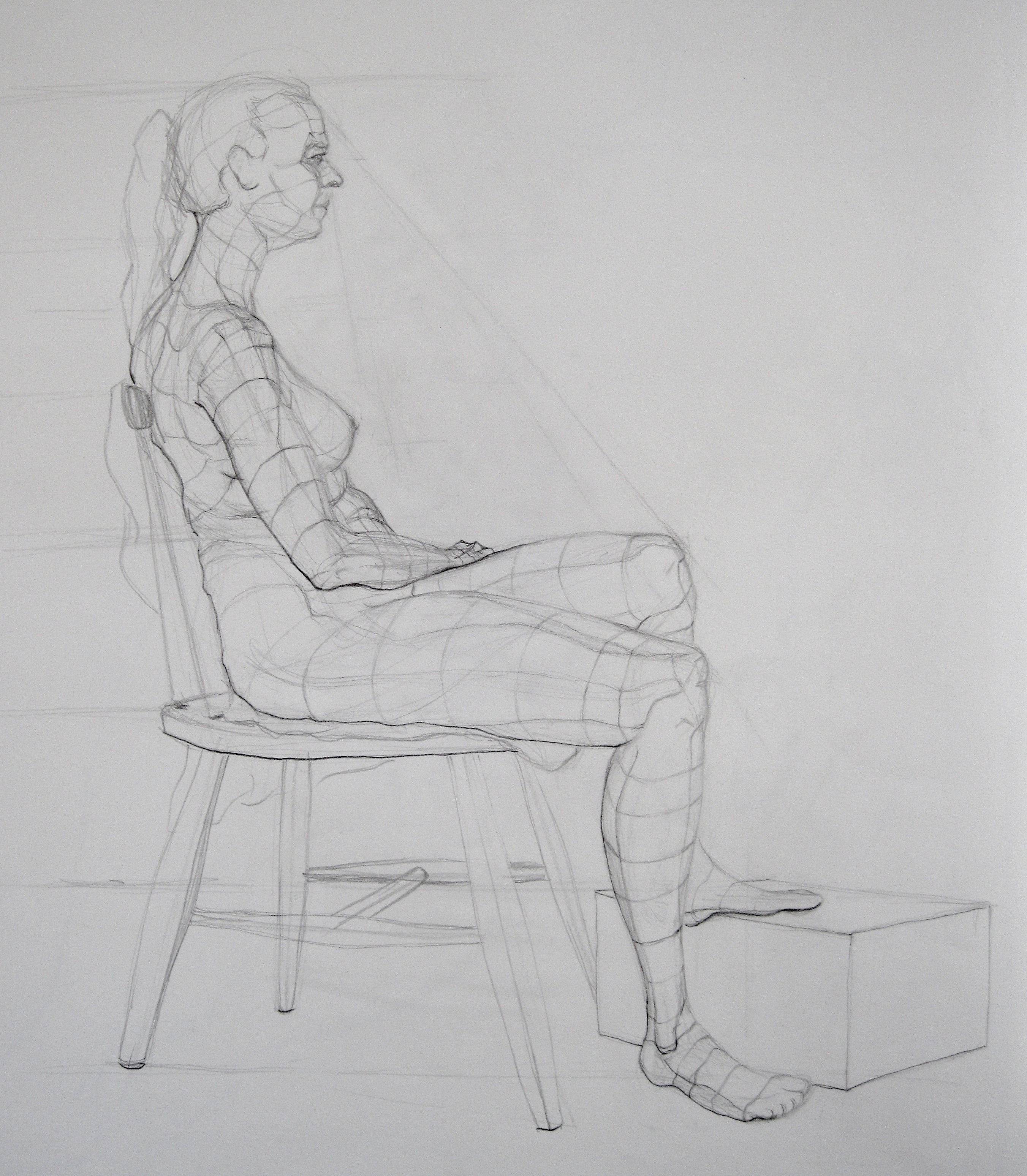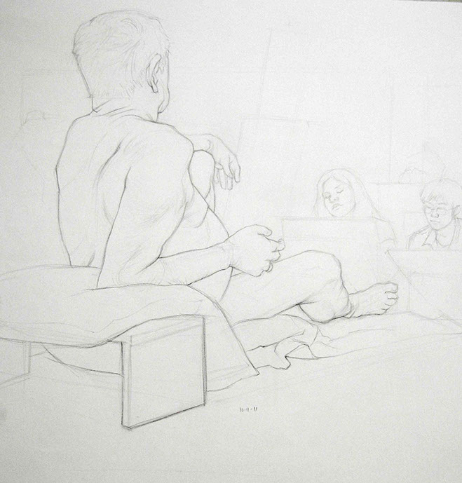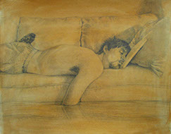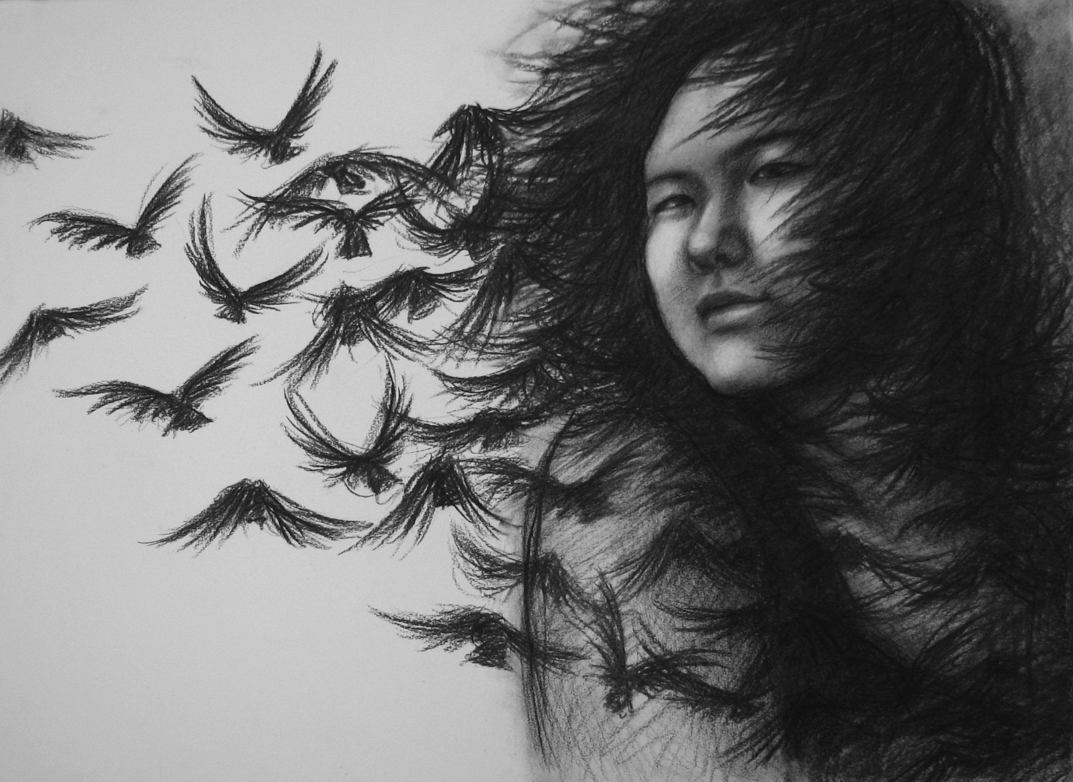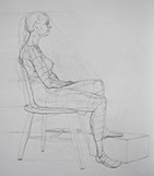 17. Self-Portrait Final from Observation, Charcoal and Watercolor