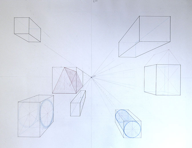 1-Point Perspective Invented Grid with Objects 2