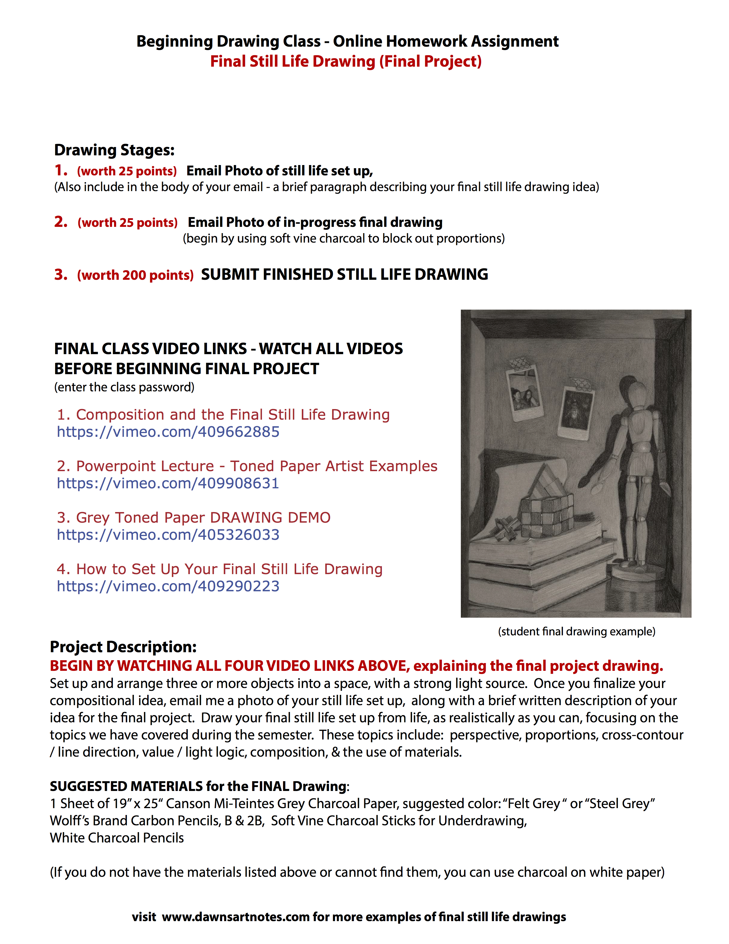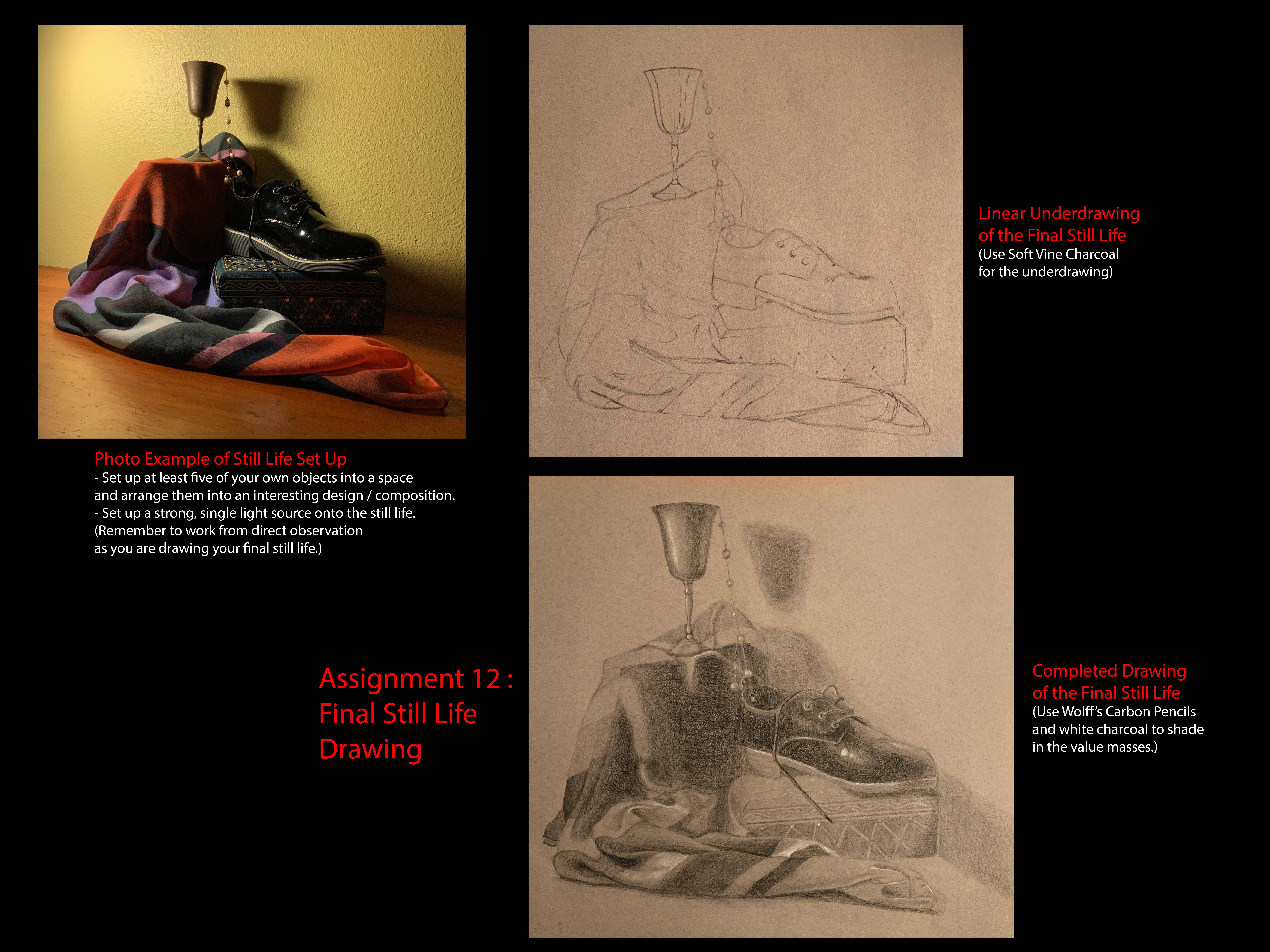 How to Set Up Your Final Still Life Drawing (Final Drawing Examples)