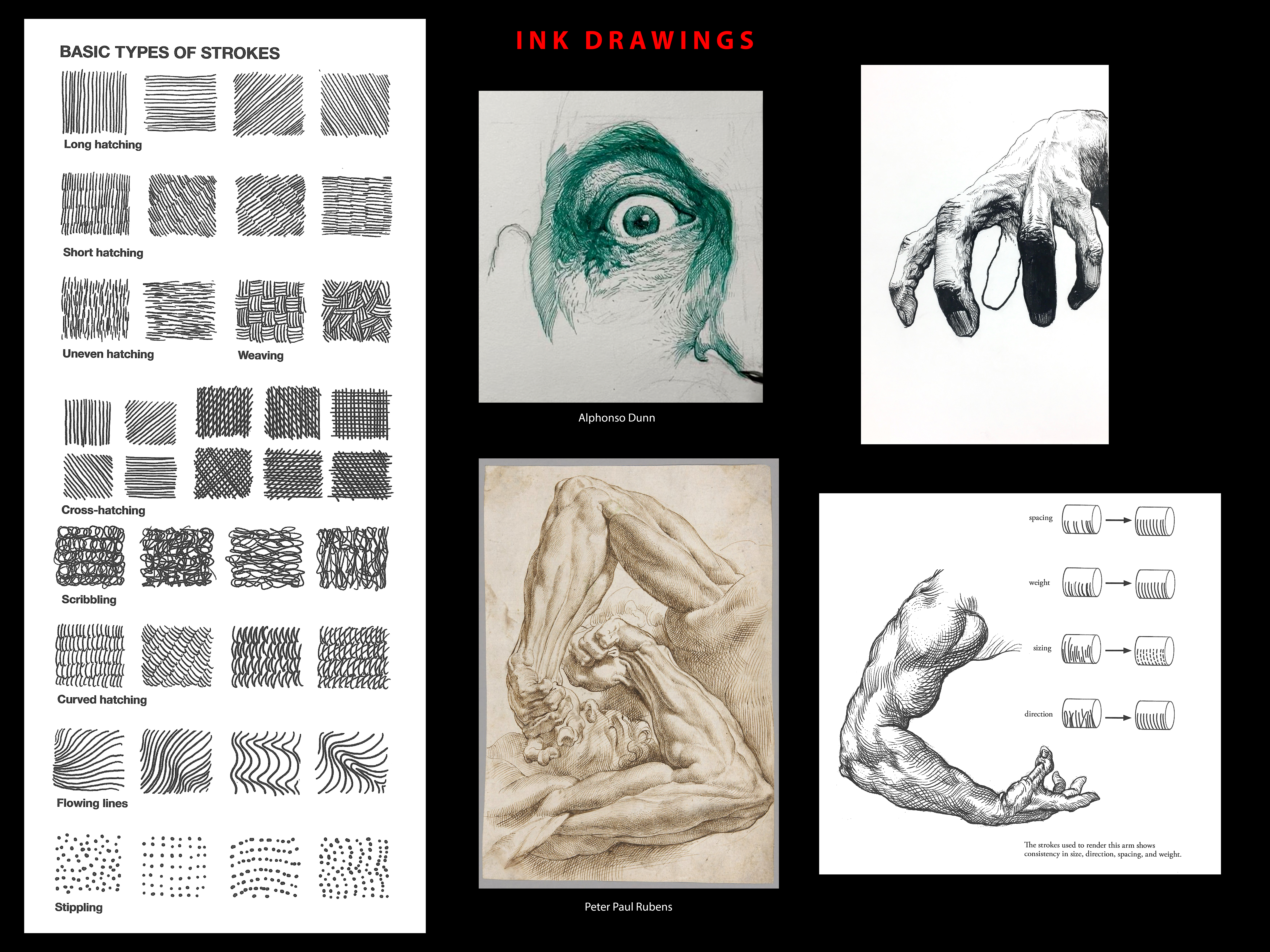 Ink drawing- hatching examples
